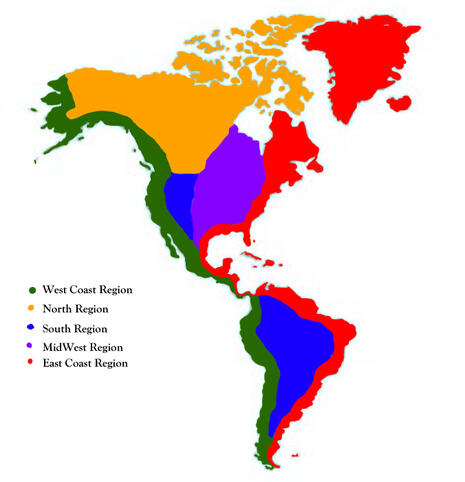 While The Council recognizes that there are individual governments for each country, they do not recognize the boundaries of those countries and have drawn their own divisions for each continent. America is divided into several regions (shown below). Each region rules under the same three Tenets and their related laws. All rulings are uploaded to a database that is shared throughout the globe. This allows for Magistrates and Inquisitors to rule with as much consistency as possible. None of the regions have individualistic rights, as the various models for "regional rights", observed over time in different countries, proved to founding members of The Council as an unnecessary complication (for more information see brief history below).