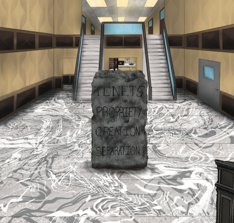 HQ ExteriorThis entry was created completely from my imagination. Depicted below is a rough outline of what the entryway to the Midwest HQ would look like, including: